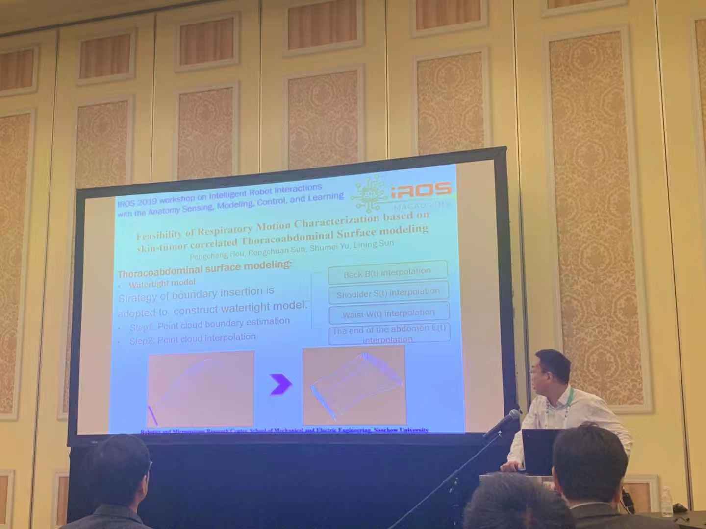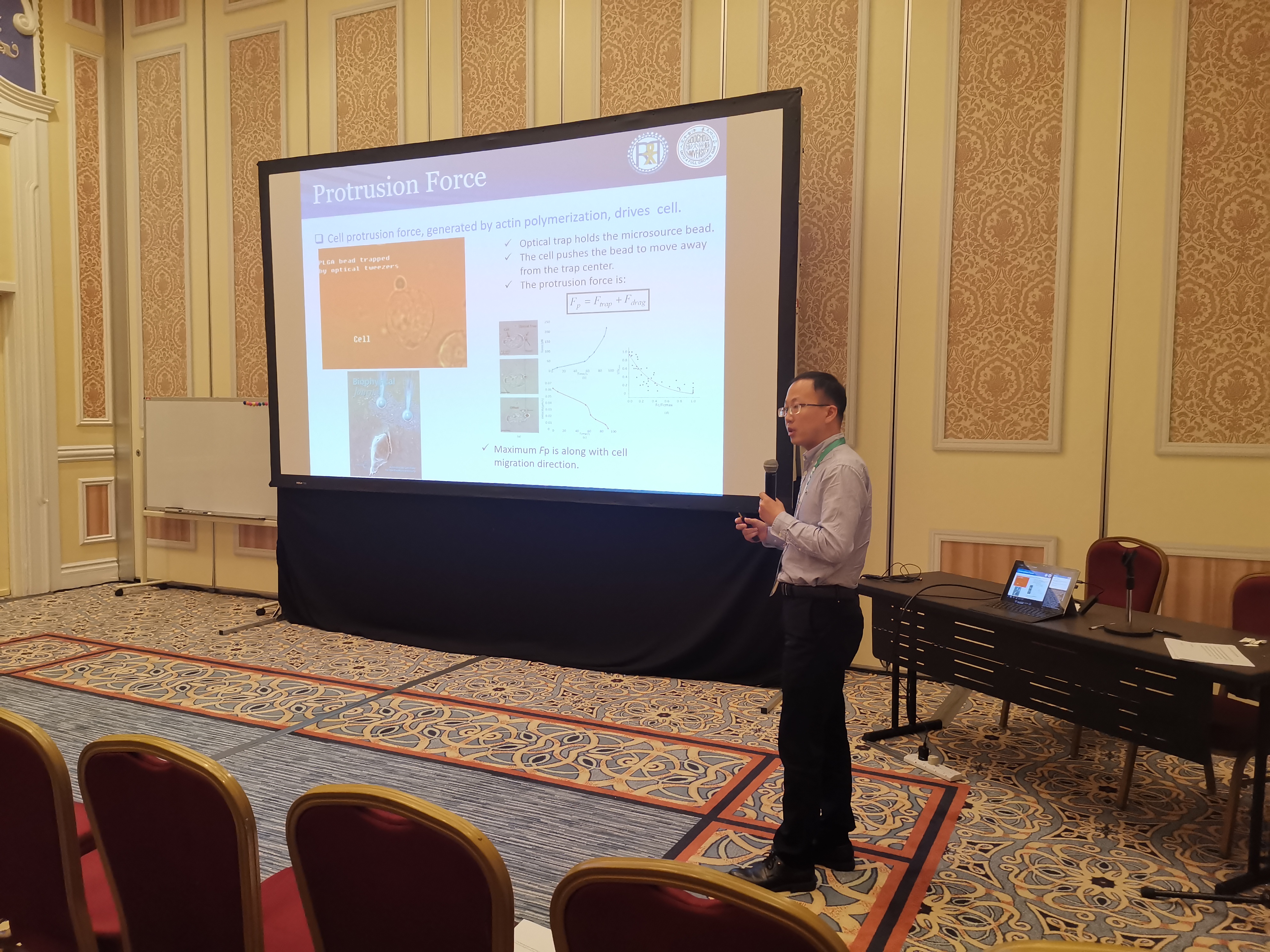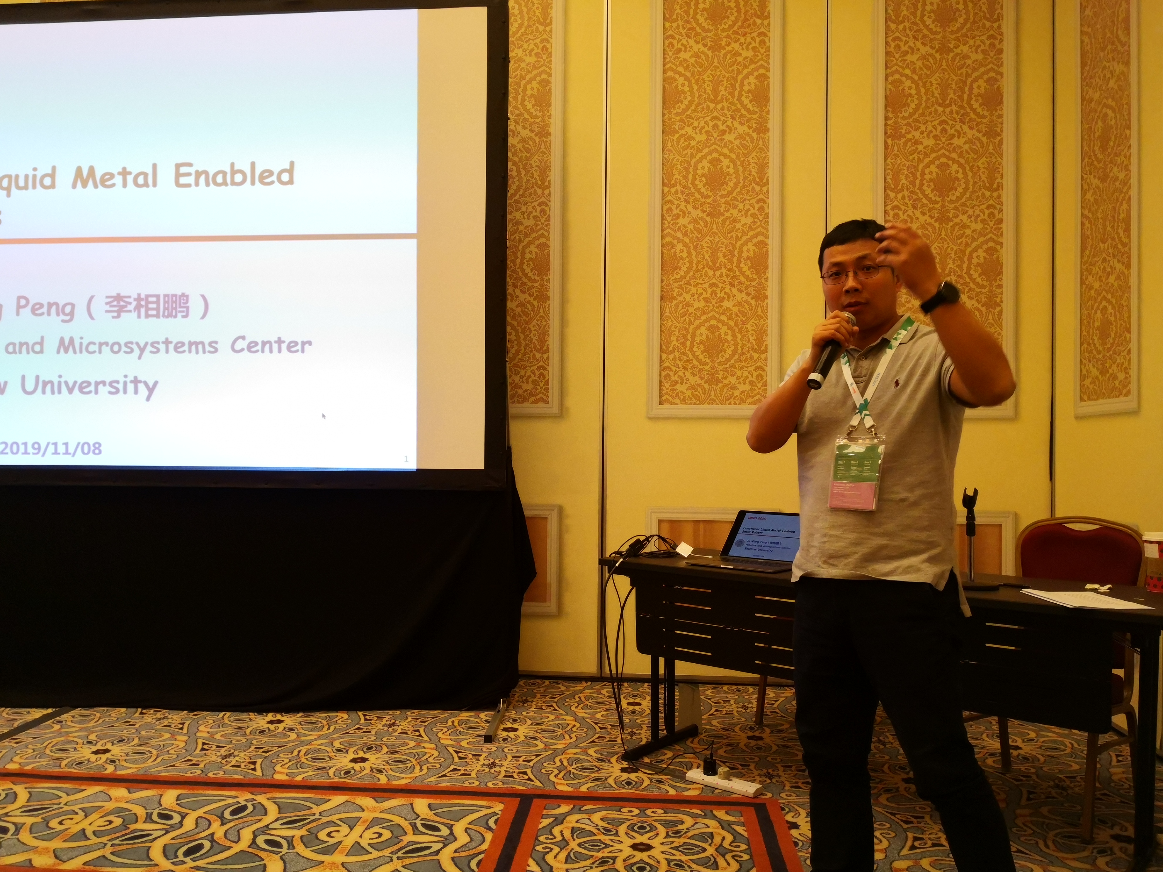 李相鹏、杨浩老师受大会会务组委托,共同组织了“微操作与微机器人”主题论坛,国内外该领域专家做了精彩报告并展开了“华山论剑”,详细讨论了微操作与微机器人的关键技术与研究热点,为未来发展指明了方向。同时,李相鹏、杨浩老师也分别做了主题报告,题目分别为“液态金属微机器人”与“生物细胞机械特性的测量方法”,并与参会人员进行了热烈讨论。孙荣川老师在“智能机器人与解剖结构交互作用”主题研讨会上发表了题为“基于皮肤-肿瘤关联的胸腹表面模型呼吸运动表征可行性”的演讲报告。迟文政老师对大会录取论文“一种针对移动机器人的快速启发式路径规划算法”进行了海报展示。