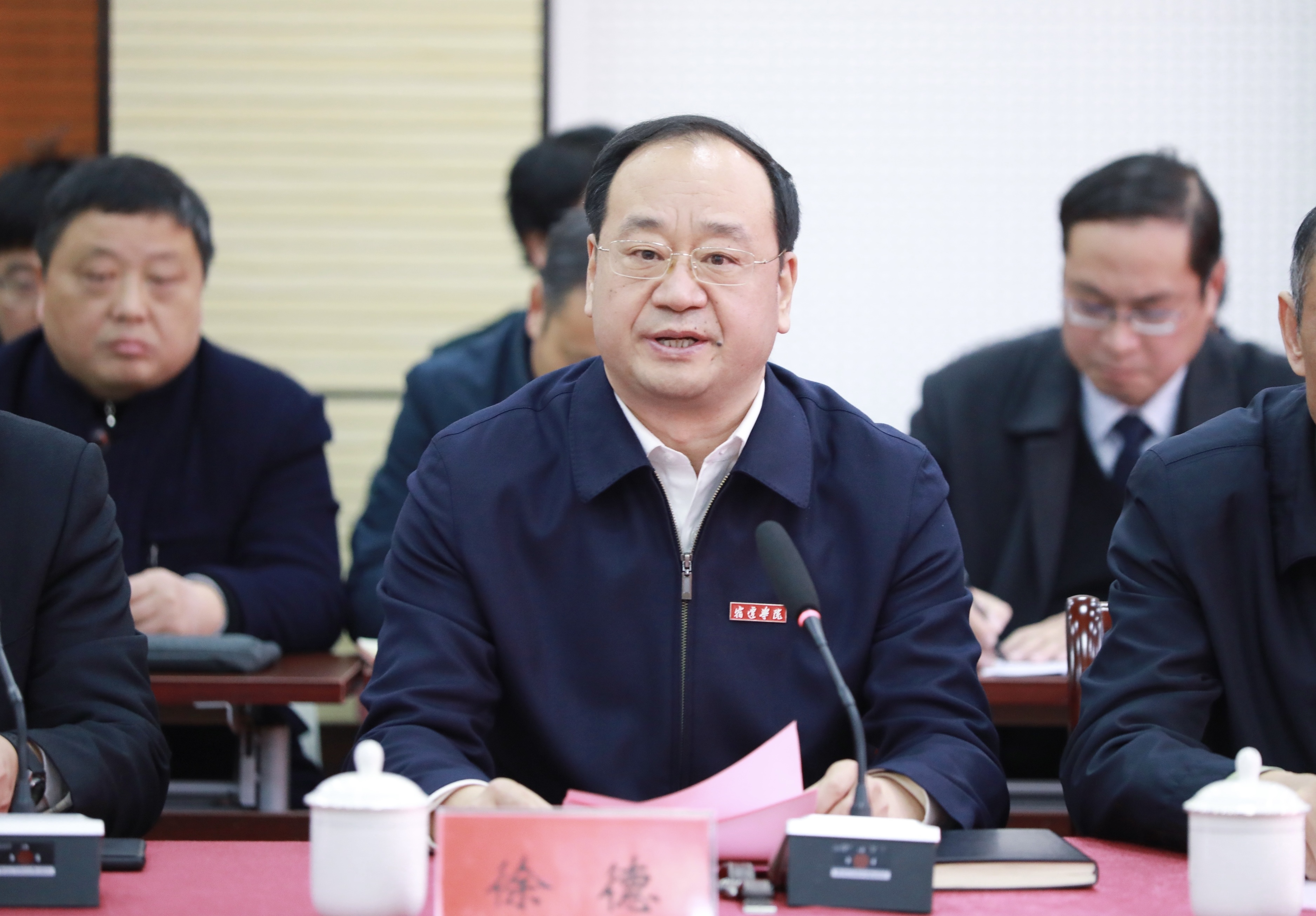 宿迁学院党委书记徐德致欢迎词,他表示,宿迁学院将进一步提高政治站位,举全校之力,集全校之智,与苏大全面对接、策应扶持,主动学习、吸收、借鉴、消化苏大各方面的好理念、好经验和好做法,以项目化、清单化、责任化的方式,有力有序推进双方合作,共同开启“新联建时代”,确保省委、省政府的文件精神落地落实,努力走出一条具有宿院特色化、个性化的发展之路,共同打造校校援建合作的示范典范。