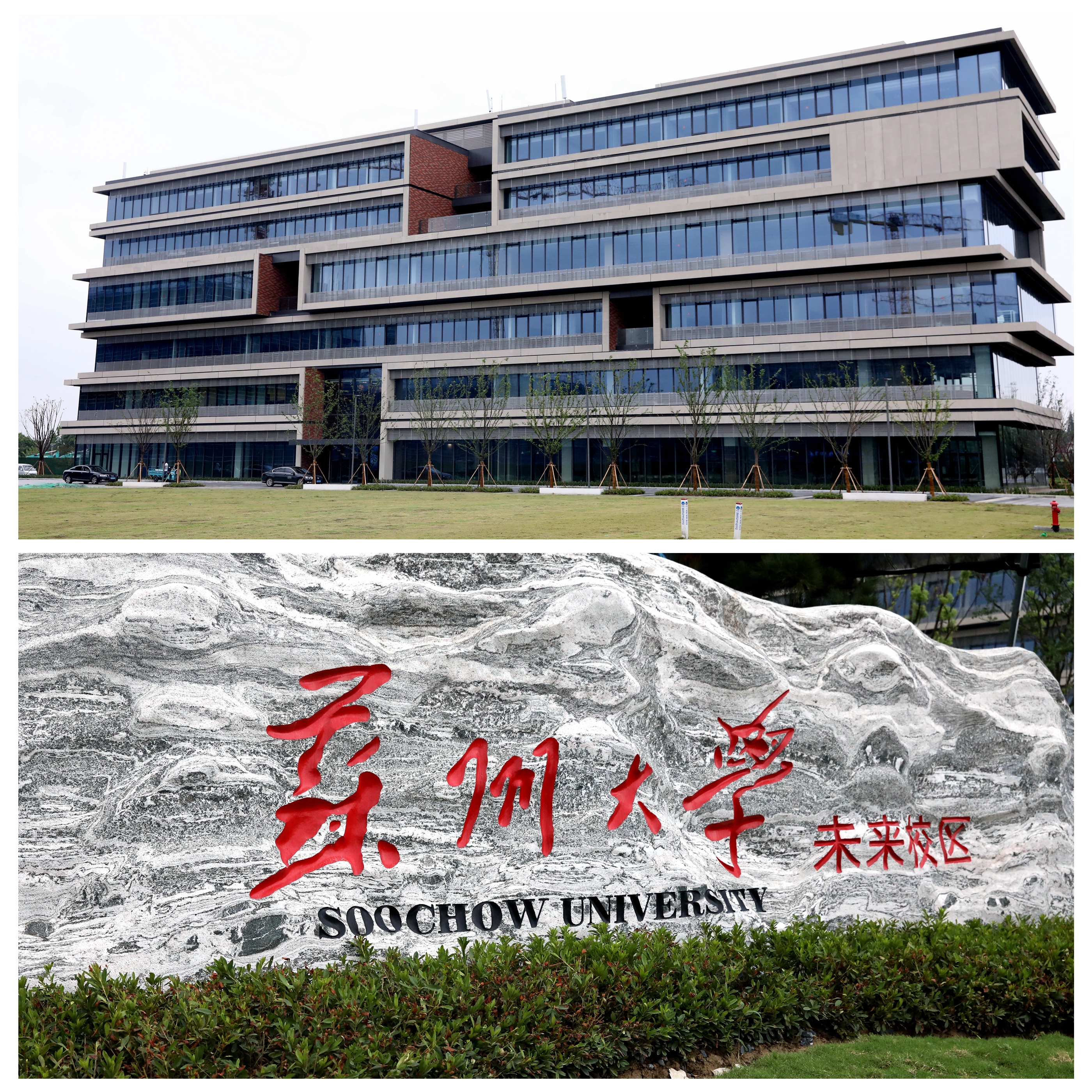 苏州大学未来校区位于吴江区524国道以西、长安路以东、莘七公路以北,依胜地生态公园和京杭大运河而建,总建设用地面积约1000亩,计划本科生规模不少于6000人。一期校区工程建设用地面积约216亩,建筑面积11.4万平方米,将于2022年8月全部竣工,具备基本办学功能。其中综合楼、师生公寓即将于2021年10月交付使用。综合楼建筑融合教学、科研、办公、会议、住宿、餐饮等功能为一体。