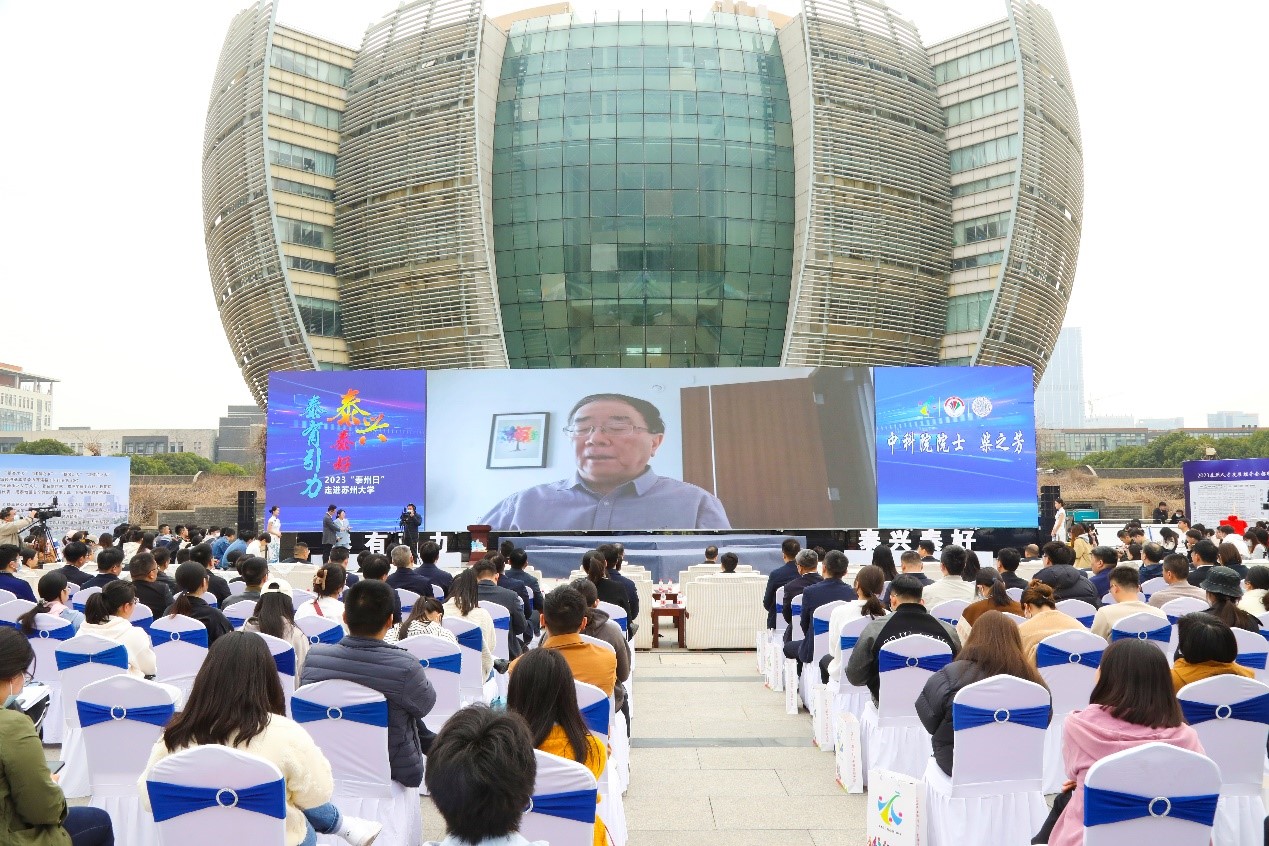 我校柴之芳院士以视频连线方式致辞。他指出,苏州大学科研实力雄厚、人才荟萃。泰兴文化底蕴深厚,科创气息浓郁,人才新政“双十条”的发布,显示了泰兴对人才的尊重和渴望,对创新工作的重视和支持。希望通过本次合作的签署,促进校地产学研用深度融合,响应党的二十大报告对科技工作的要求。