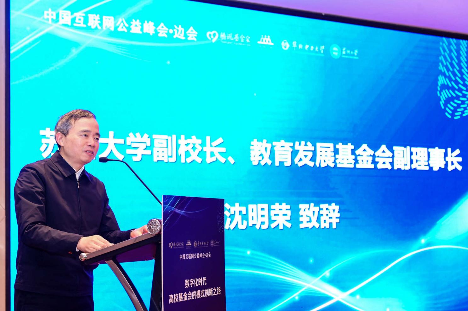 我校副校长、教育发展基金会副理事长沈明荣对出席此次边会的各位来宾表示欢迎。他回顾了苏州大学基金会发展历程,指出当下正是模式创新、主动应变的时代,数字化为高校基金会多渠道发展提供了更多可能,要用好数字化这把金钥匙,以数字化为高校基金会发展赋能;要以规范化、专业化建设需求为导向,充分利用现有信息与网络技术,有效改进工作流程并构建专业化管理系统,积极展示基金会建设发展成效,创新筹资方式,赢得社会公众更大信赖,推动实现高校基金会可持续发展。