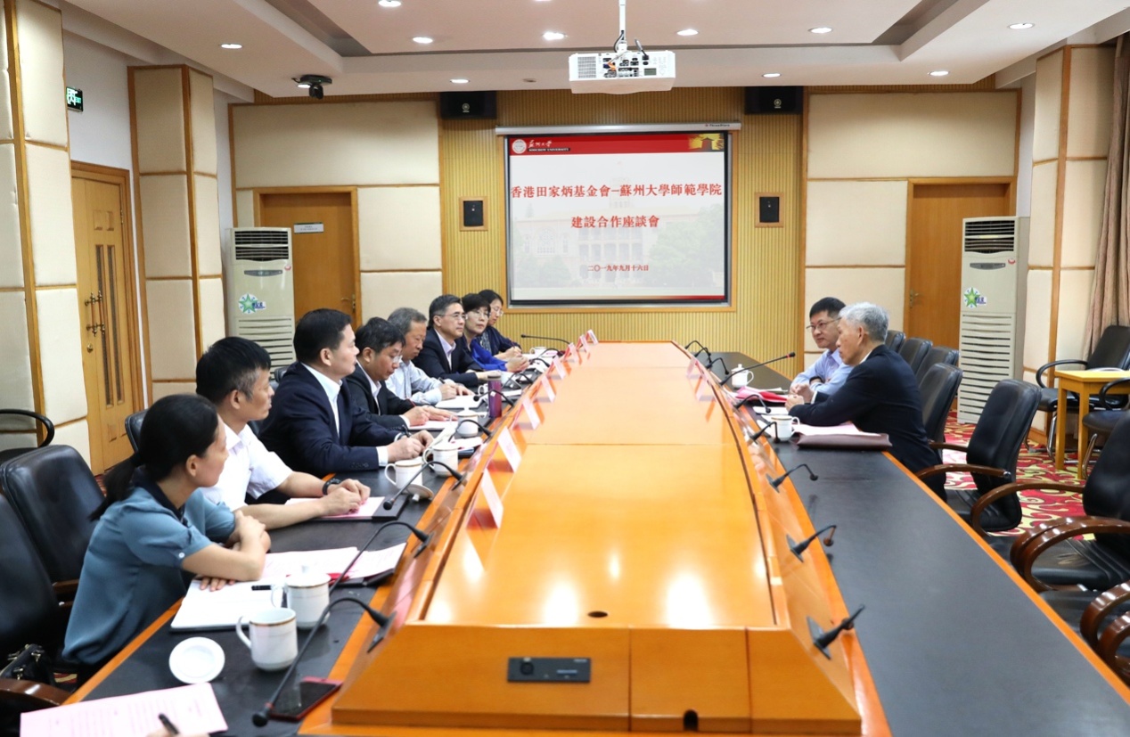 9月16日上午,香港田家炳基金会—苏州大学师范学院建设合作座谈会在红楼会议中心举行。香港田家炳基金会董事局主席田庆先,香港田家炳基金会评审委员会委员、德育小组召集人黄志坚,校党委书记江涌,以及相关职能部门和学院负责人参加座谈会。