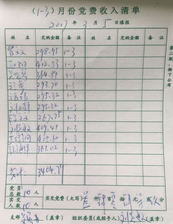 发展办支部2017年3月党费收缴清单