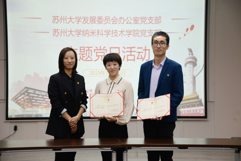 为深入开展“不忘初心、牢记使命”主题教育,了解调研纳米科学技术学院学生党支部建设,更好地增强师生党支部互动,践行以“师生为中心”的工作理念,10月16日下午,发展委员会办公室党支部(以下称发展办党支部)赴纳米科学技术学院学生党支部开展共建主题党日活动。发展办党支部胡新华同志、张海洋同志、黄文军同志等全体党员、纳米科学技术学院党委书记洪晔同志、团委书记蔡梦婷同志,以及学生党支部全体党员参加了活动。
