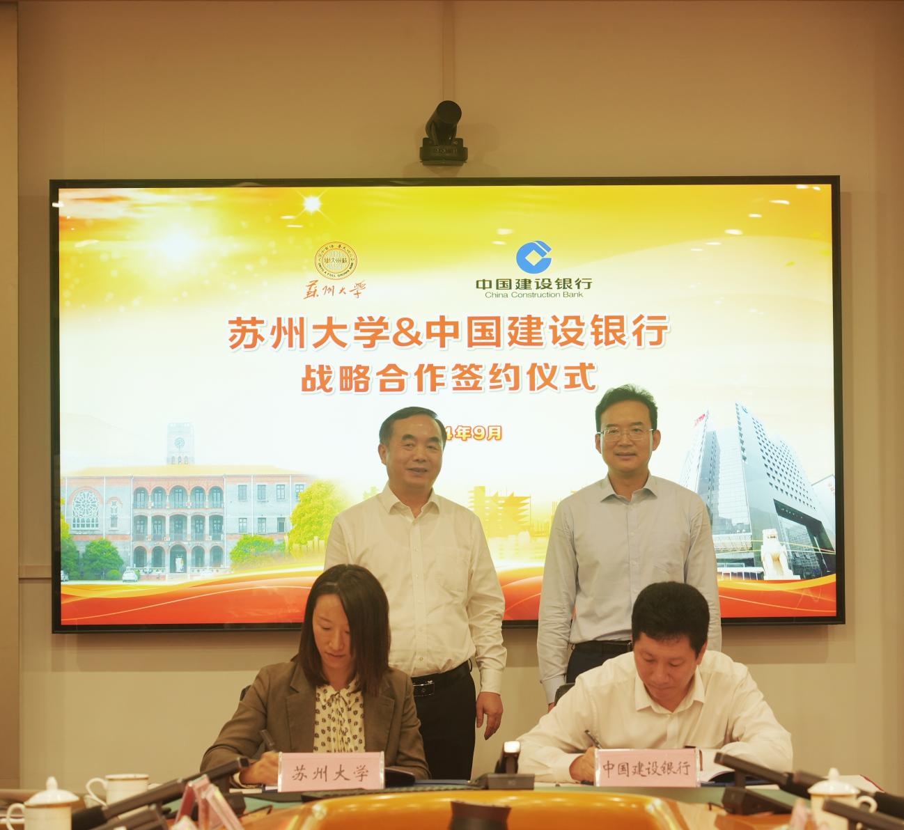 9月12日下午,苏州大学与中国建设银行在苏州大学签署战略合作框架协议。苏州大学党委书记张晓宏与中国建设银行党委委员、副行长王兵出席并见证签约。苏州大学党委常委、副校长洪晔与中国建设银行机构业务部总经理尚朝辉代表双方签署协议。苏州大学党委办公室、财务处、招生就业处、国内合作发展处、数据资源与信息化建设管理处单位负责人,中国建设银行总行机构业务部、苏州分行及相关部门负责人参加签约活动。