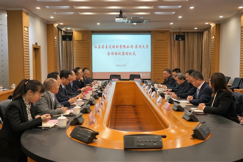 沈明荣在讲话中表示,苏美达是国机集团核心成员企业,在机电设备进口、大宗物资、纺织服装等领域颇具市场规模及品牌影响力。苏州大学是国家“双一流”建设高校和“211工程”、“2011计划”首批入列高校,是创新创业人才培养、高水平科学研究和高新技术研发的重要基地。双方具备良好的合作基础,广阔的合作前景,衷心祝愿纺织公司与纺院合作顺利,也期待能与苏美达强强联合,携手发展,实现互利共赢。