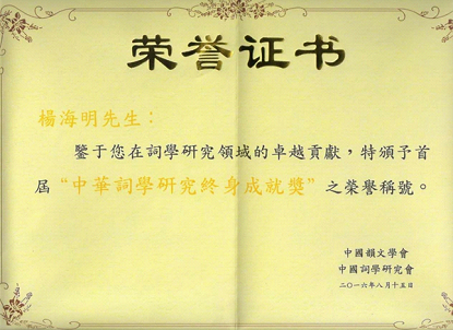 附:杨海明教授荣获首届中华词学研究终身成就奖颁奖辞