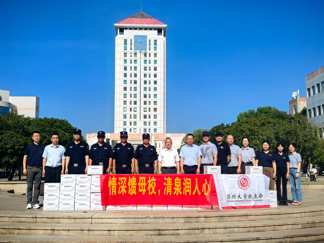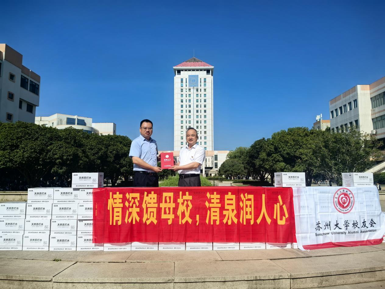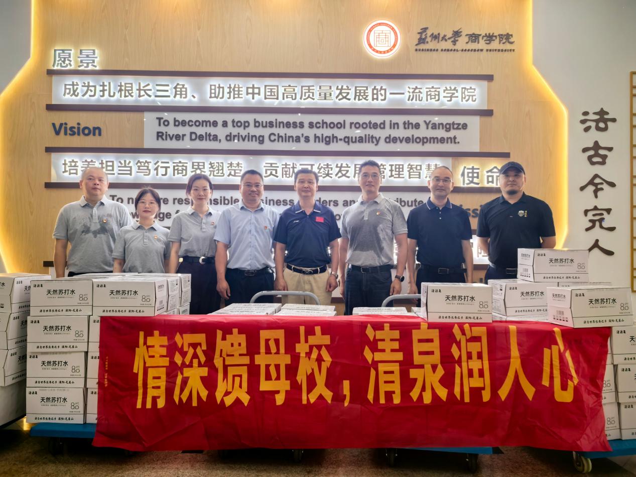 7月4日,苏州大学国内合作发展处、基金会、校友会党支部以“情深馈母校,清泉润人心”为主题开展主题党日活动。活动中,苏州大学商学院2013级工商管理硕士师为国校友心系母校发展,慷慨捐赠600箱矿泉水,以实际行动表达对母校的深厚情谊。校党委常委、副校长查佐明代表学校向师为国校友颁发了捐赠证书,高度赞扬其饮水思源、反哺育人之举,并对国内合作发展处、基金会、校友会党支部在凝聚校友力量、服务学校发展中的作用给予了充分肯定。