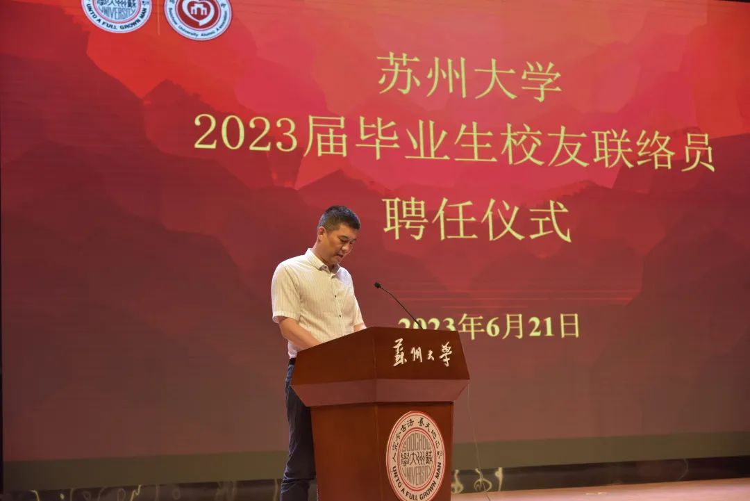 在致校友联络员的欢迎词中,徐冉代表学校、代表校友总会对全体自愿成为校友联络员,并愿意履行这一光荣义务的毕业生们致以真挚的感谢。他指出校友是学校的宝贵财富,重要资源,是学校教育事业发展最可信赖和依靠的力量;校友联络员是连结校友与母校的不可或缺的存在。他衷心地期盼全体新晋校友联络员能够心系母校,履行好校友联络员的光荣义务。并寄予了四个期望:一当好母校精神的传播者,秉承校训,志存高远;二要做新时代最好的苏大人,努力奋斗,踔厉前行;三要维系好校友与校友、校友与母校之间感情的联络者,高度重视校友工作,认真履行职责;四要当好校友活动的服务者,促进校友和母校同发展、共进步。