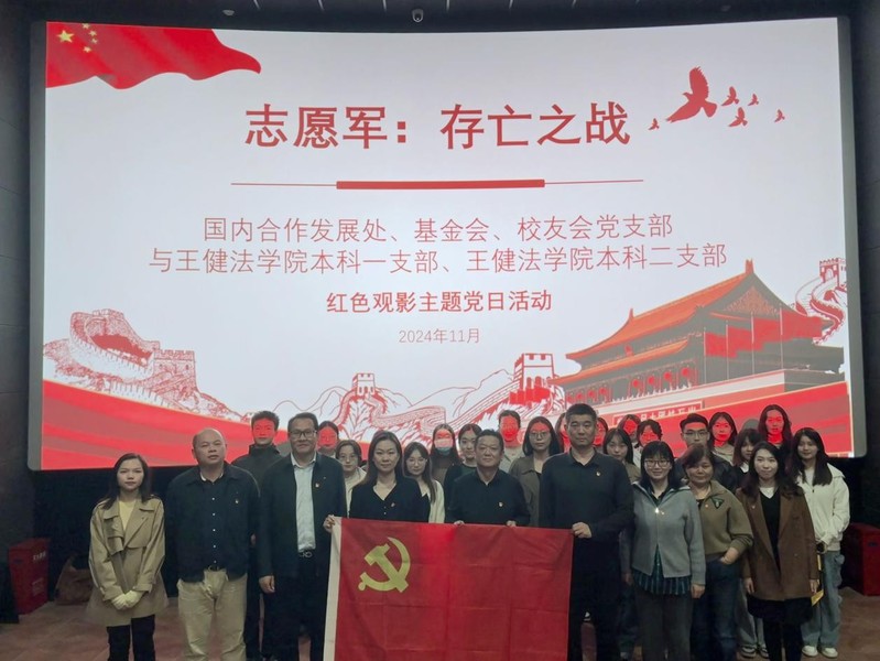 为深入学习贯彻党的二十届三中全会精神,重温峥嵘岁月,厚植家国情怀,赓续红色血脉,11月13日,国内合作发展处、基金会、校友会党支部和王健法学院本科一支部、二支部联合开展红色观影主题党日活动,集体观看了爱国主义影片《志愿军:存亡之战》。