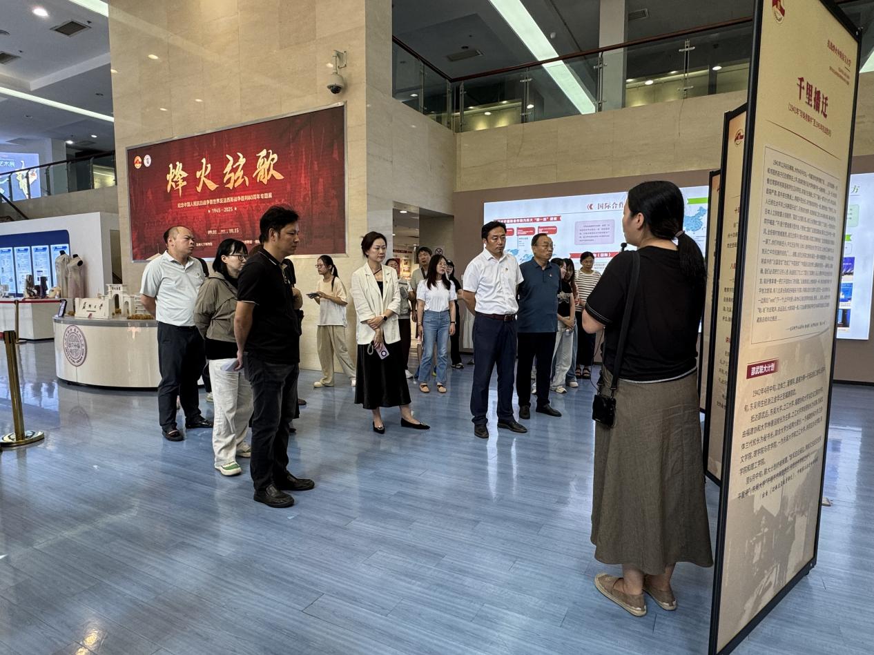 随后,同志们参观了《烽火弦歌—纪念中国人民抗日战争暨世界反法西斯战争胜利80周年专题展》。展览详细展现了抗战时期东吴大学等苏州大学前身学校被迫西迁、辗转多地办学的艰辛历程。面对战火纷飞,东吴师生八年如一日坚持教学,展现了知识分子坚贞不屈的气节和教育救国的崇高精神。