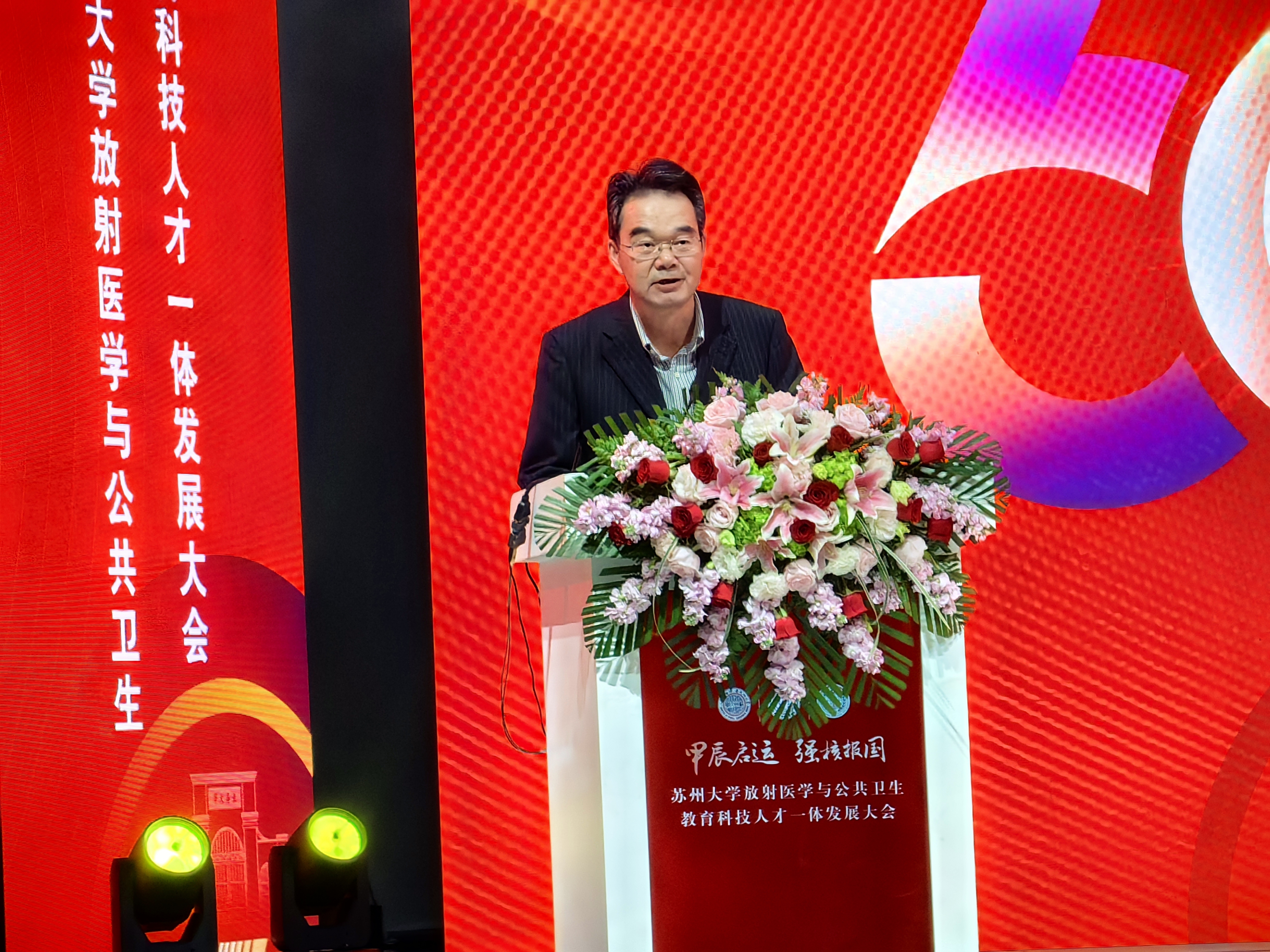 杨树兵指出,苏州大学放射医学学科伴随着中国核工业的发展逐步成长壮大,多年来励精图治、与核共进,成为我国放射医学领域和公共卫生人才培养的一面旗帜和沃土。希望学院以办学60周年为新起点,继续保持红色育人底色和国防学科特色,不断提高人才培养质量,更好地服务国家战略和区域经济社会发展,为推动实现教育、科技、人才互促共进作出更大贡献。