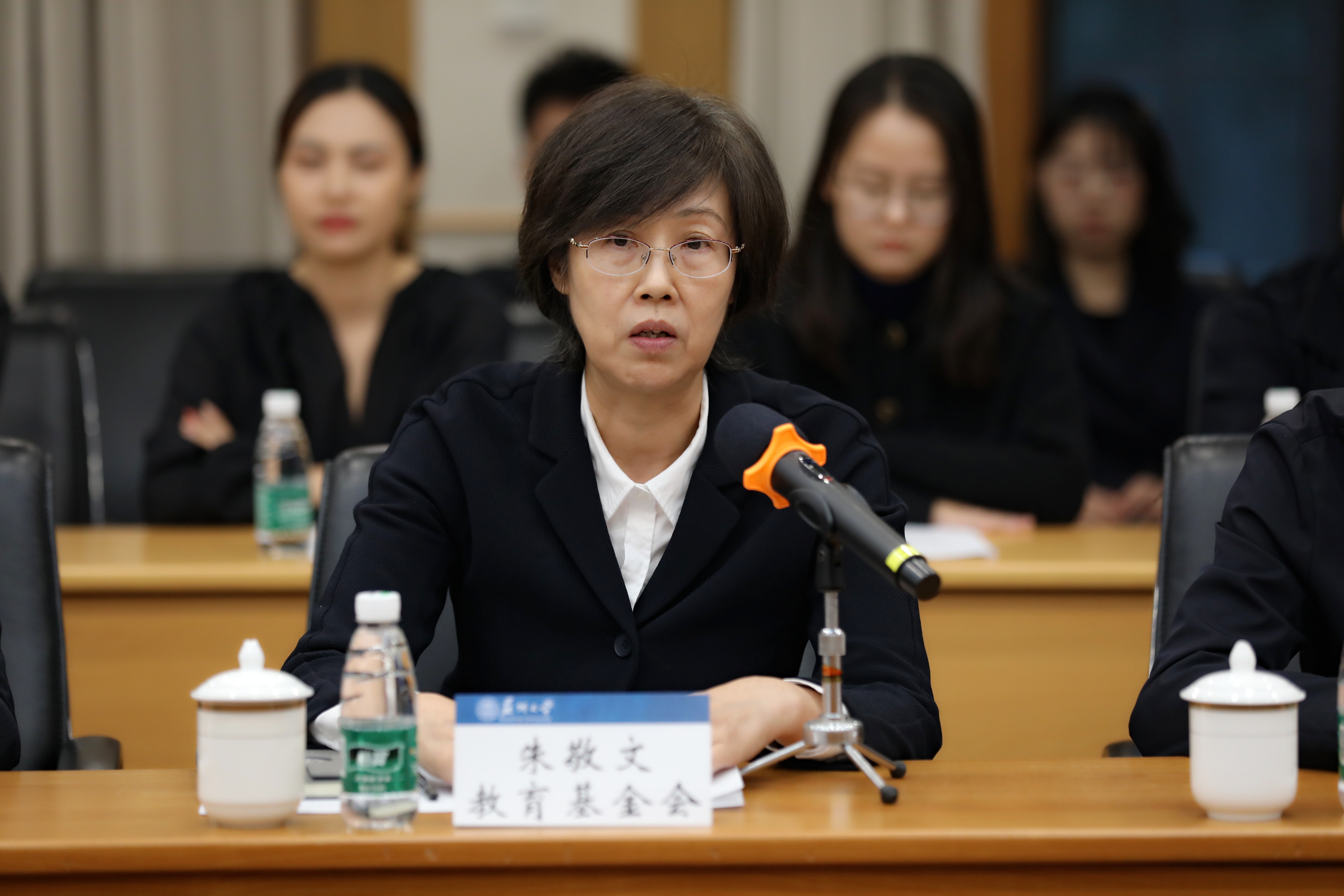 南京中医药大学党委常委、副校长徐树法,扬州大学副校长龚卫娟,苏州科技大学党委常委、副校长崔雪丽,南京师范大学公共管理学院党委副书记龚子秋,江苏师范大学科文学院党委书记张立荣,安徽师范大学学生处副处长宋静作为兄弟高校代表,对先生的逝世表示沉痛哀悼并向其家人致以最诚挚的慰问,对朱敬文教育基金会长期以来关心、支持学校事业发展表示最衷心的感谢。大家深情回顾了朱敬文、朱恩馀先生一家两代人对各高校作出的贡献,一致表示将心怀感恩,珍惜先生留下的宝贵精神财富,鼓舞广大师生在各自的学习、工作岗位上续写这份教书育人、助人自助的情缘,以实际行动将敬文精神所蕴含的核心价值的影响力继续传承下去。