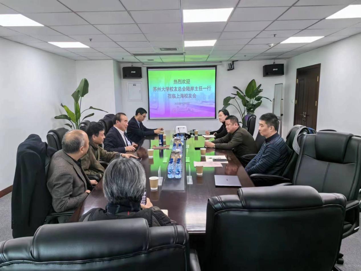 为了更好凝聚校友力量,增进校友与母校情感,实现学校和校友事业共赢发展,12月5日,苏州大学校友总会秘书长陆岸,副秘书长徐冉、刘子静等一行专程赴沪走访上海校友会,与上海校友会会长钱天东、副会长徐维礼、监事长吕钢、秘书长周桂荣等校友进行了交流座谈。