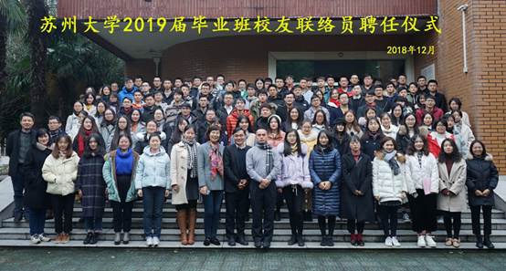 12月11日,我校2019届毕业班校友联络员聘任仪式在天赐庄校区学术报告厅举办。发展委员会办公室主任、校友总会秘书长赵阳,学生工作部(处)副部(处)长陈平,校友代表、建筑与房地产校友会秘书长、《苏州楼市》主编付正乔以及新聘任的2019届校友联络员参加了此次活动。