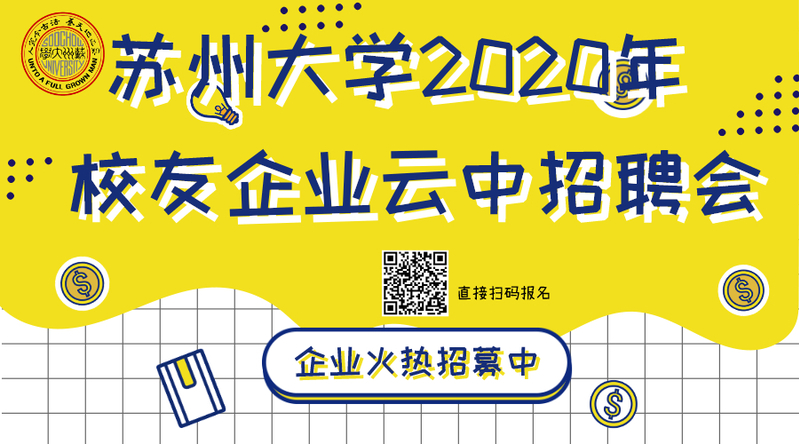 当下疫情的防控工作尚未结束,目前我校所有线下招聘会、宣讲会已暂缓举办,我们理解各企业翘首以待求贤若渴,我们对广大未签约准毕业生的焦虑感同身受。千山一脉,万水同源。现在,我们需要大家在非常时期的鼎力支持,我们将连续十年举办的线下校园专场招聘会转移到线上,诚挚邀请广大校友企业、董事企业和直属单位携岗位报名参加“苏州大学2020年校友企业云中招聘会”,向更多苏大学子抛出橄榄枝,提供实习及正式工作岗位,实现用人单位招贤纳士和母校毕业生顺利求职就业的双赢。云中招聘会的具体事项安排如下: