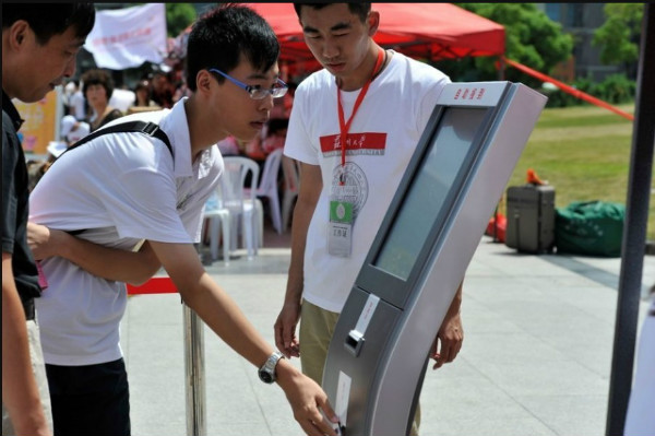 在报到现场,有一个长长摊位,设置了十几个电子报到窗口,新生只要刷一下“苏大通”就可以完成报到,并获得一个新生报到单,上面会提供学生的学院、住宿等信息。“今天的报到非常顺利,最忙的时候,窗口排队等候的学生也没有超过五人,学生可以在五秒钟之内完成报到手续,给学生提供了极大的便利。同时,‘电子报到’也为学校、学院提供了及时、确切的报到信息”工作人员介绍说。