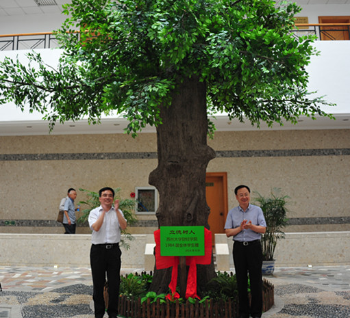 纪念大会结束后,与会领导、老师和校友们在财经科学馆一楼举行纪念品捐赠仪式并在钟楼前合影留念。