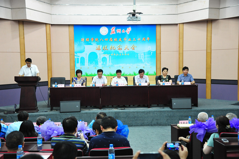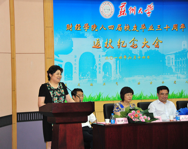 2014年6月14日下午,东吴商学院(财经学院)八四届校友毕业三十周年返校纪念大会在东校区财经科学馆隆重举行。校党委书记王卓君,副校长田晓明、江作军,党委办公室主任张国华,校发展办主任、苏大校友会秘书长赵阳,商学院院长王则斌,副院长陆少杰以及老领导、老教师代表欢聚一堂,共同见证这一具有特殊意义的历史时刻。纪念大会由八四届校友代表、苏州大学出版社社长张建初主持。