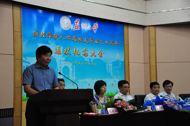 王则斌院长代表学院发表了热情洋溢的致辞,热烈欢迎校友们返校,向校友们介绍了学院30多年的发展历程以及在学科建设、师资队伍建设、人才培养、国际合作、社会服务等方面所取得的成就,并对学院的发展战略进行了展望。同时,对八四届校友们对母校的发展给予的帮助和支持表示诚挚的感谢。