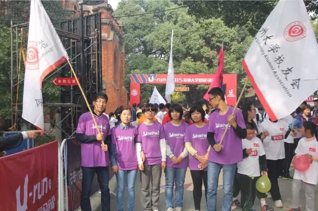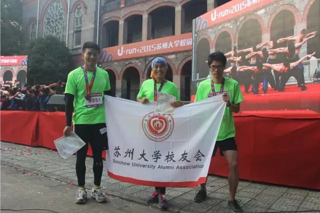 11月14日,由苏州大学主办,苏州大学体育学院、苏州大学校友会等多家单位共同承办的“U-run2015苏州大学校园马拉松”在苏大天赐庄校区鸣枪开跑。校领导陈一星、江作军,江苏省体育局副局长颜争鸣、南京体育学院副院长王正伦、江苏省体育产业集团副总经理王先正、苏州市体育局局长鲍东东、江苏省体育局群体处处长熊伟、江苏省教育厅体卫艺处副处长金剑,江苏省大学生体协主任王家宏等领导出席了起跑仪式。本次活动已是连续第三年举办,今年参赛总人数近3000人,在苏州大学校友会的广泛宣传和联络下,校友们踊跃参与,来自不同届别的参赛校友近300名,同根同源的台湾东吴大学也派出教师代表参与。