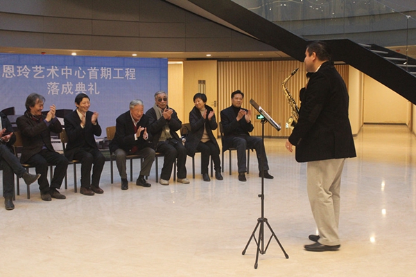 1月8日下午,苏州大学恩玲艺术中心首期工程落成仪式在独墅湖校区恩玲艺术中心举行。香港翔龙有限公司董事长、香港善源基金会主席朱恩馀,苏州市政府侨办副主任王哲莉,我校校长朱秀林、副校长田晓明、副校长杨一心、原校长陈克潜,我校有关部门负责人、音乐学院全体领导班子和师生代表等出席。