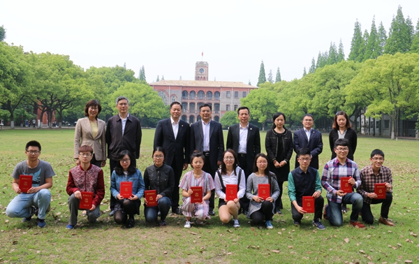最后,与会领导嘉宾与获奖学生代表合影留念。