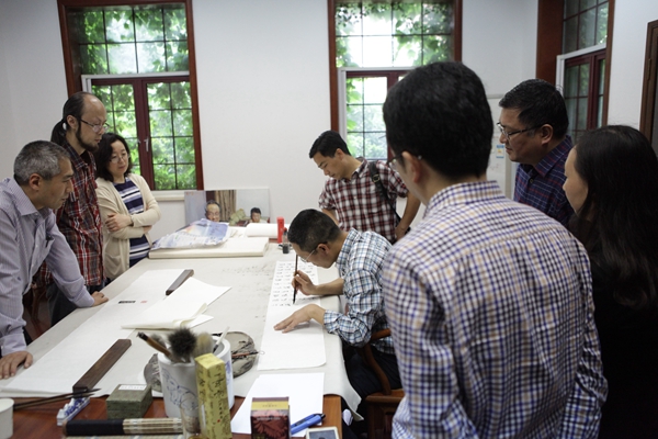 我校东吴书画研究院院长、博士生导师华人德教授,原校党委副书记、副校长徐惠德、沧浪书社执事胡伦光、原东吴印社社长周玛和、艺术学院书法篆刻研究所陈道义教授、新闻中心副主任冯一以及研究院和研究所的相关顾问、书画协会的部分老师受邀参加了活动。