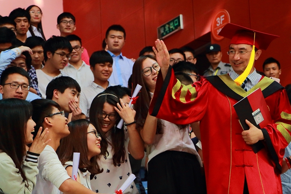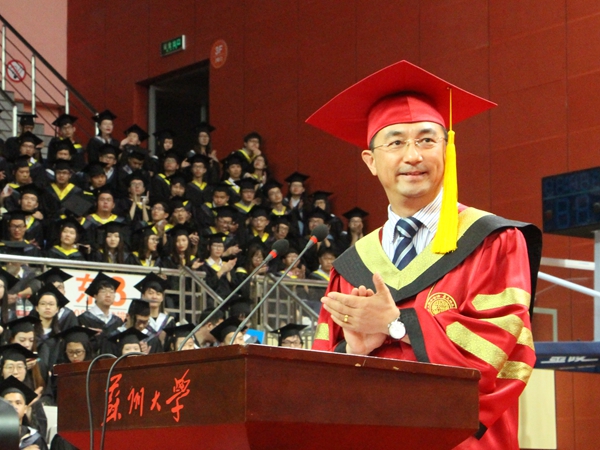 校学位评定委员会主席、校长熊思东教授向毕业生们致以最热烈的祝贺,向教职工表示最衷心的感谢,向家长亲友、社会各界人士表示最诚挚的敬意。熊校长用毕业生抽样调查数据讲述了毕业生们的成长与变化,带领着毕业生们一同回顾了丰富精彩的大学校园生活。在致辞中,他与大家分享了一份令他感动的毕业感言,并表示“成长的路上,苏大人一个都不能少”。