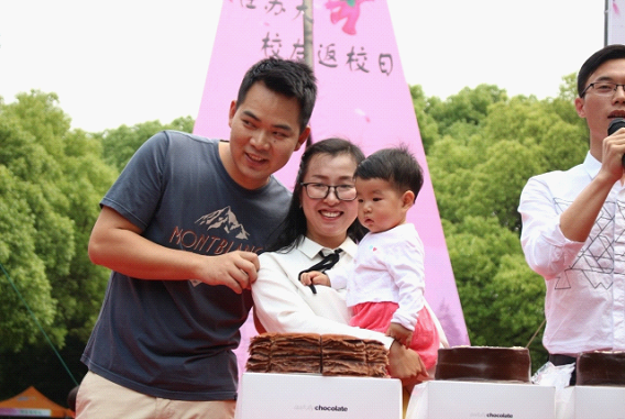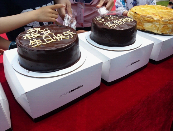 志愿者端上的浓郁的巧克力蛋糕正如与母校浓浓的情意一样,满满的都是爱。