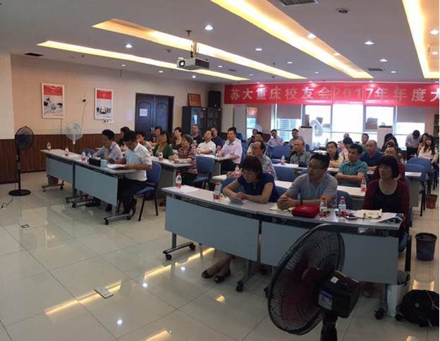 2017年7月2日,苏州大学重庆校友会年度大会暨换届大会在重庆威琅集团总部隆重召开,来自全市各行各业五十余名校友欢聚一堂共叙同窗之情,共话母校之谊。校友们结合自身经历,讲述了在校的美好时光和离开母校后的工作、学习和生活情况,进行了校友会理事推荐选举,并就校友会以后建设等方面建言献策。