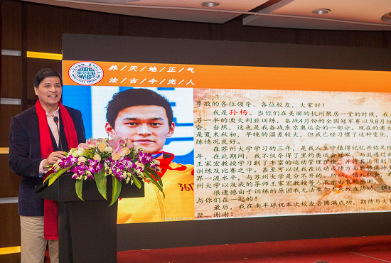 新当选的浙江校友会常务副会长徐卫华表示将在李建华会长的带领下,牢固树立为校友服务的宗旨,积极做好浙江校友会工作,积极联络凝聚校友,充分发挥校友会的平台作用,实现校友资源共享,为母校多做贡献。奥运冠军孙杨校友当选为校友会副会长,他因在澳洲集训不能前来参会,专门写了贺信并委托父亲到场祝贺,孙杨父亲感谢苏大对孙杨的培养,祝福苏大和浙江校友会越来越好。陈党博士作为校友代表发言,他深情回忆了在母校求学的经历,希望在校友会大家庭里互帮互助共同发展。