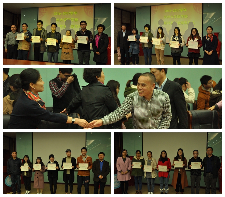 医学部党工委副书记黎春虹老师介绍领导来宾后,校学生工作处副处长陈平老师致辞,他代表学校衷心感谢理想眼科医院那份为人民健康卫士的培育事业尽绵薄之力的拳拳之心。并祝贺获得奖学金的同学,希望他们在今后的学习工作生活上再接再厉,戒骄戒躁,不断进步。之后,苏州大学附属理想眼科医院院长宋鄂教授发言,她和大家分享了苏州大学理想眼科奖学金的创办理念:薪火相传,奖励优秀,祝愿奉献与传承的医学精神不断传递,永葆活力。接着由医学部党工委书记邹学海老师宣读表彰决定,邹书记希望同学们饮水思源,学会感恩,并将来自学校与理想眼科医院的种种关爱和鼓励传递给更多的人。随后嘉宾们为医学部二十名品学兼优的学生颁奖。