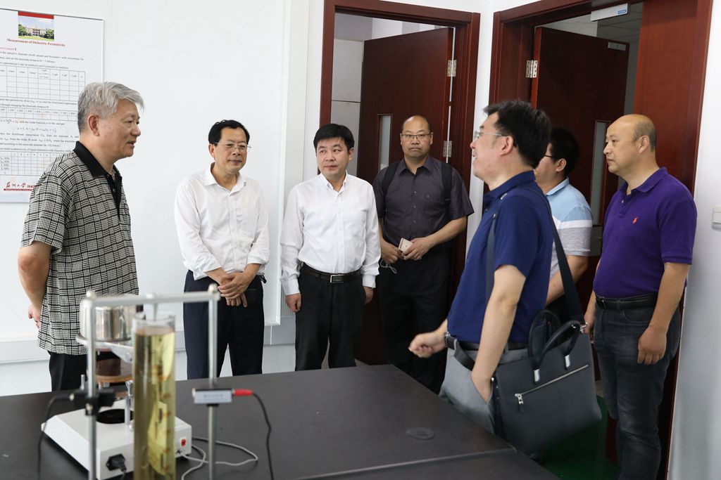 芮筱亭院士一行还来到我校物理科学与技术学院 ,参观了我校物理国家实验室教学示范中心、凝聚态物理及交叉中心、江苏省薄膜材料重点实验室,听取了相关教授对实验室平台建设、运行模式以及研究院队伍建设、国际表现和未来发展等方面的介绍。
