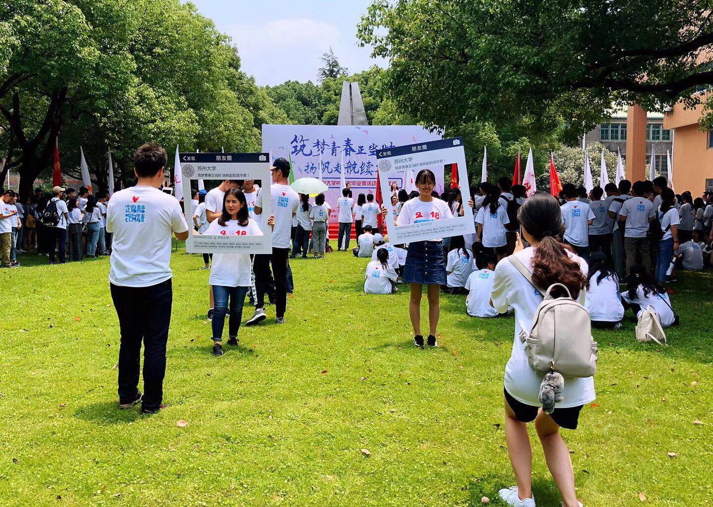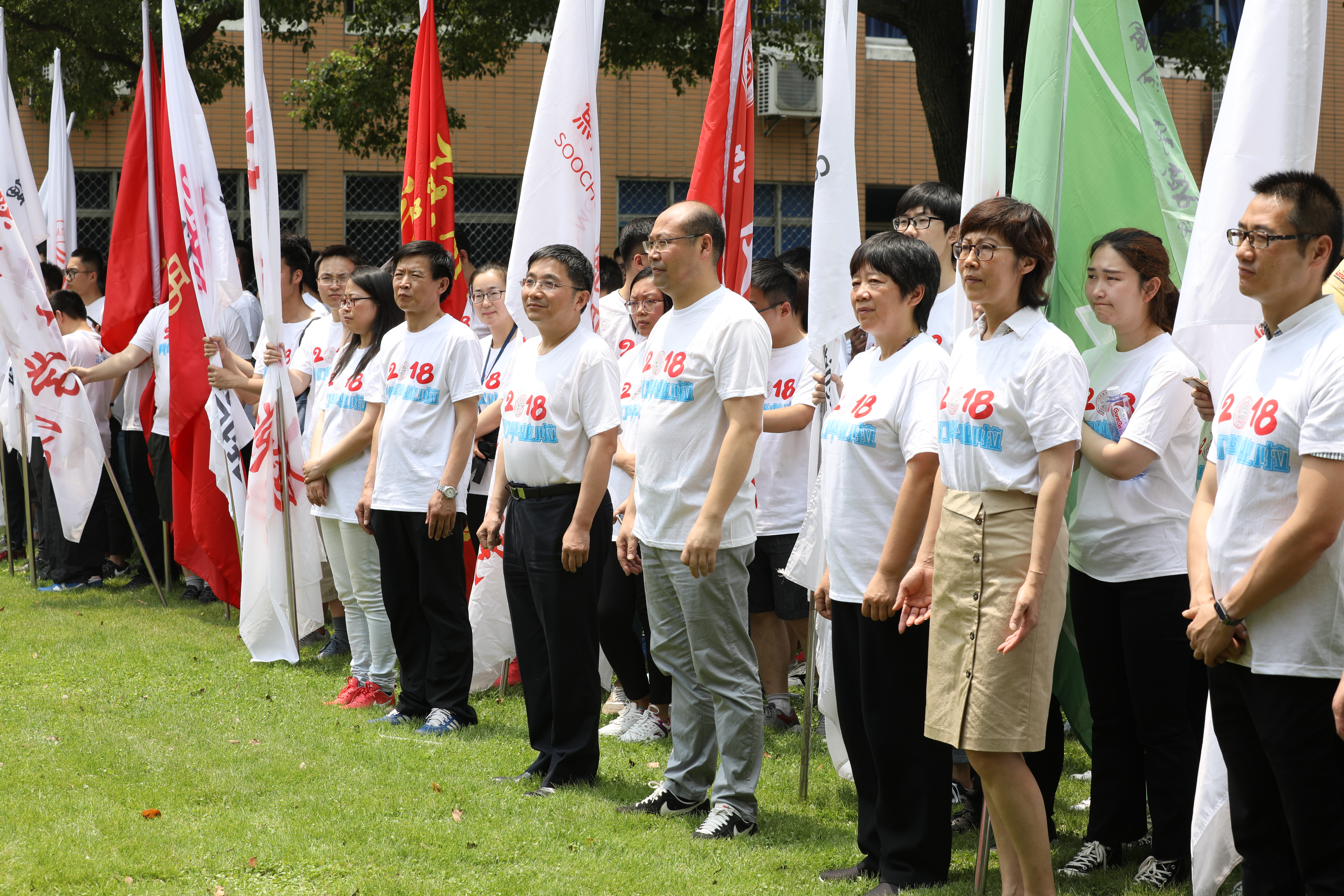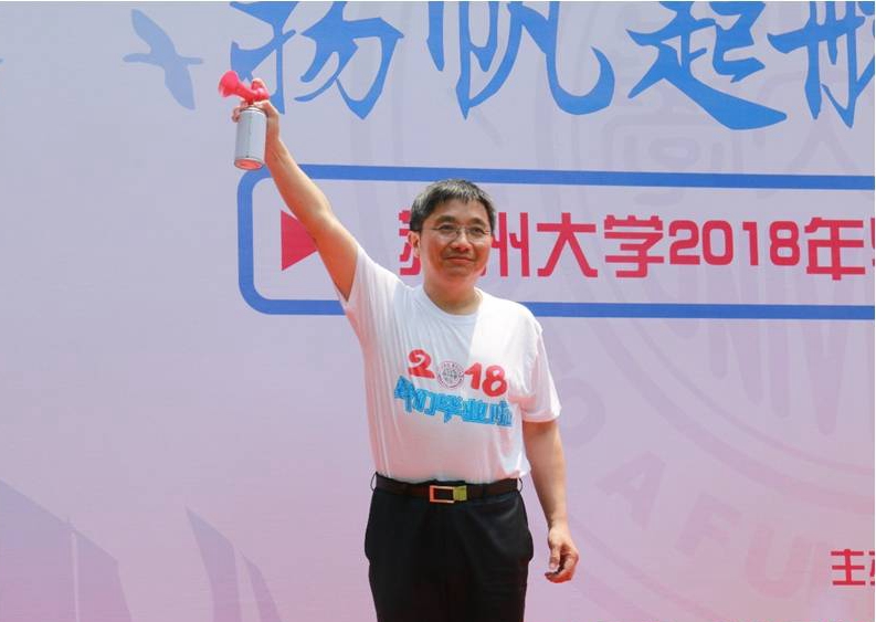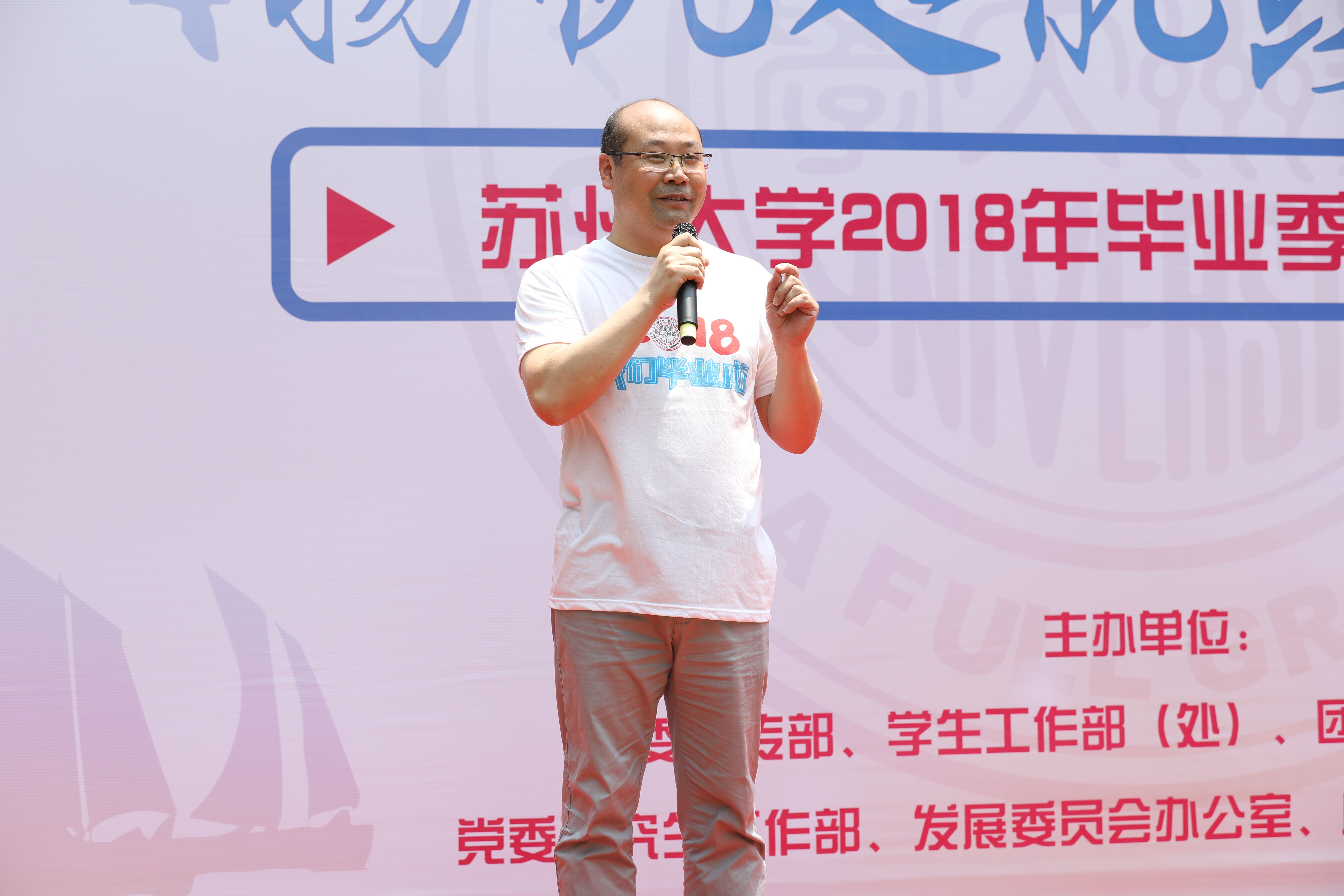 江涌宣布苏州大学2018年毕业季活动正式启动,并为毕业生校园欢乐跑鸣笛发令。