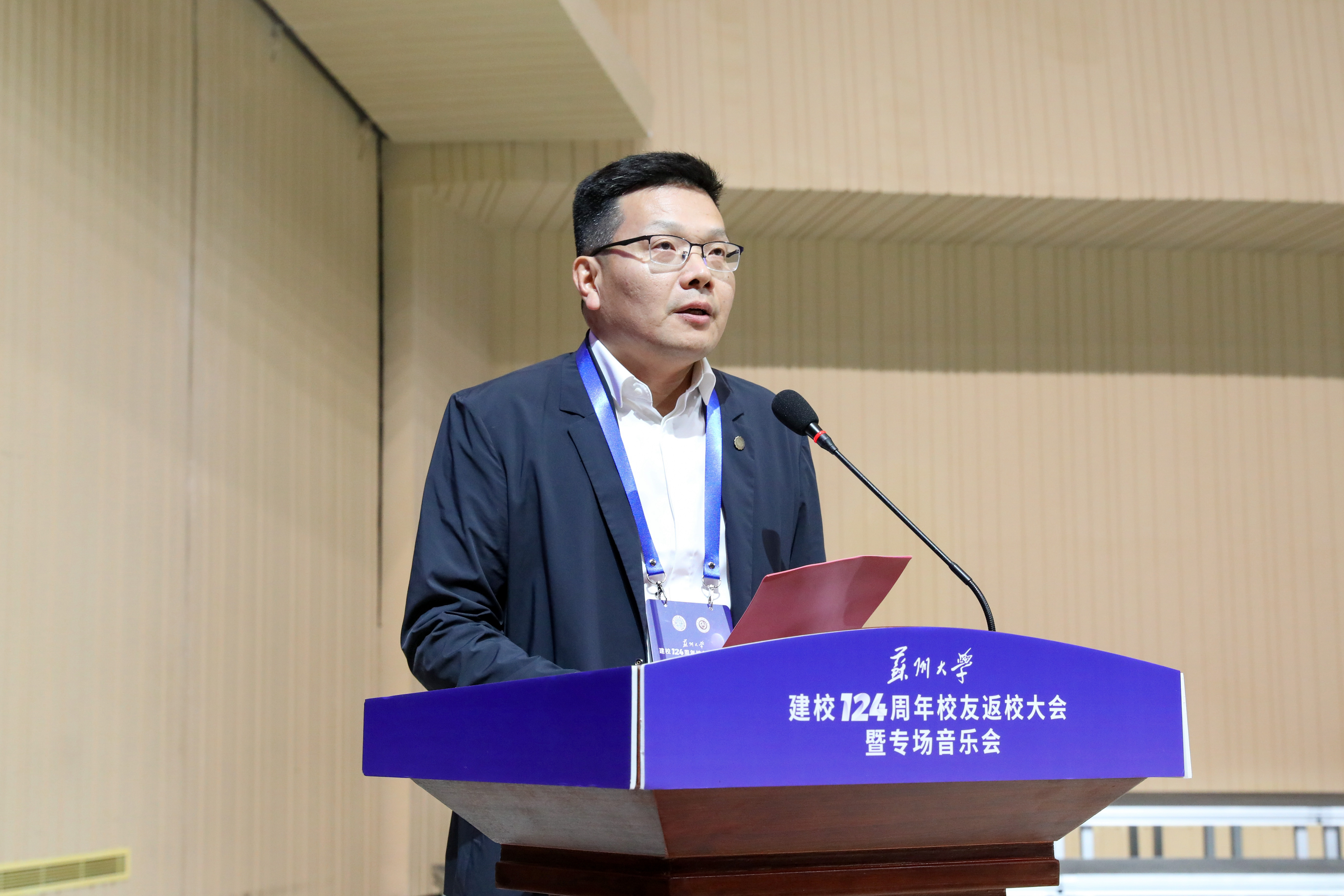 校友代表、王健法学院1997届经济法专业毕业生赵鸣回顾了难忘的老师恩与同窗情,也表达了对苏大学子能够树立崇高理想的希望及对母校蓬勃发展的祝福。他表示,苏州大学校友会作为汇聚广泛校友资源的开放性平台,不仅为校友提供了交流心得、增进情谊的机会,更起到了整合资源、发挥校友优势的纽带作用,希望大家积极参与校友会活动,共同为母校的繁荣增光添彩。