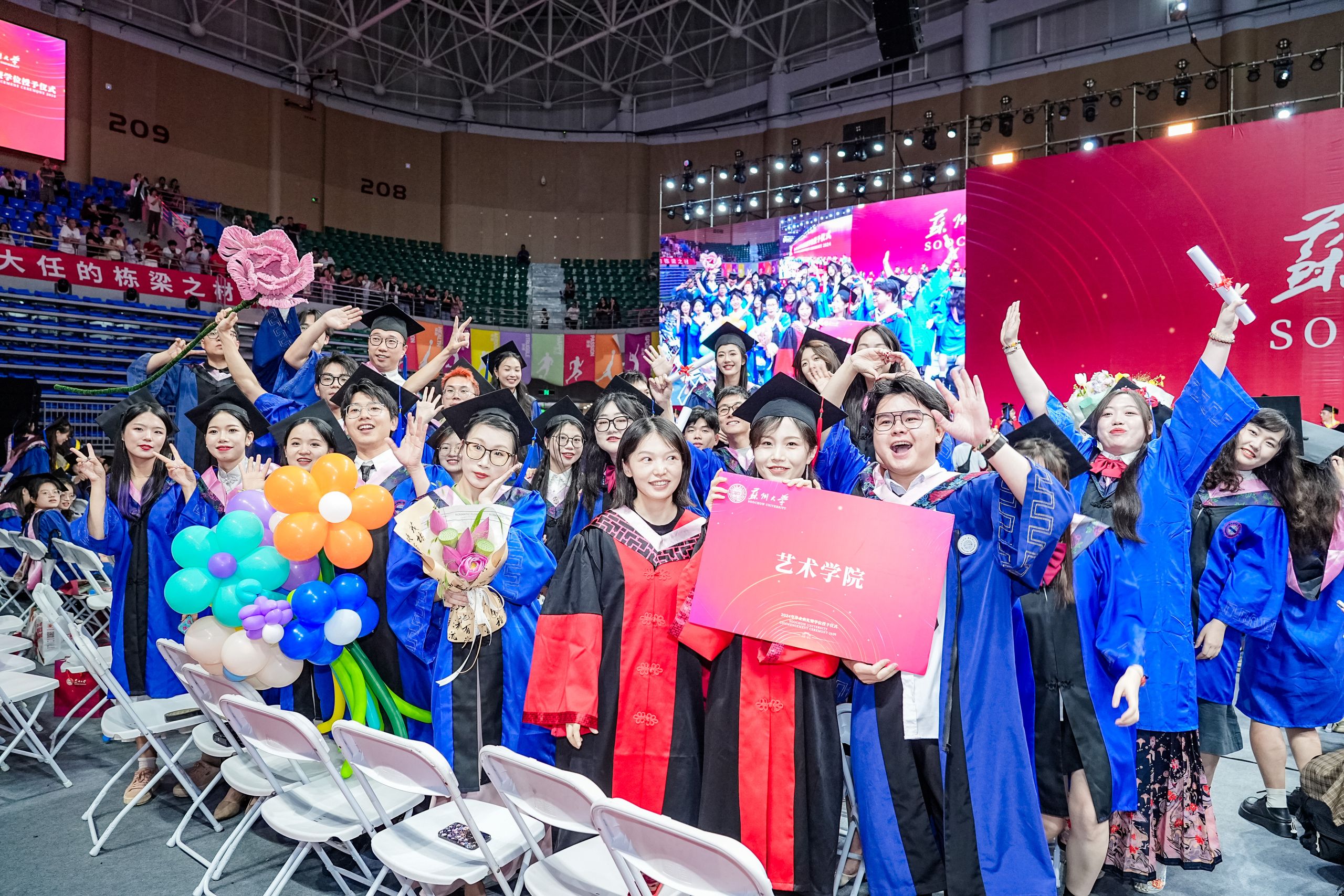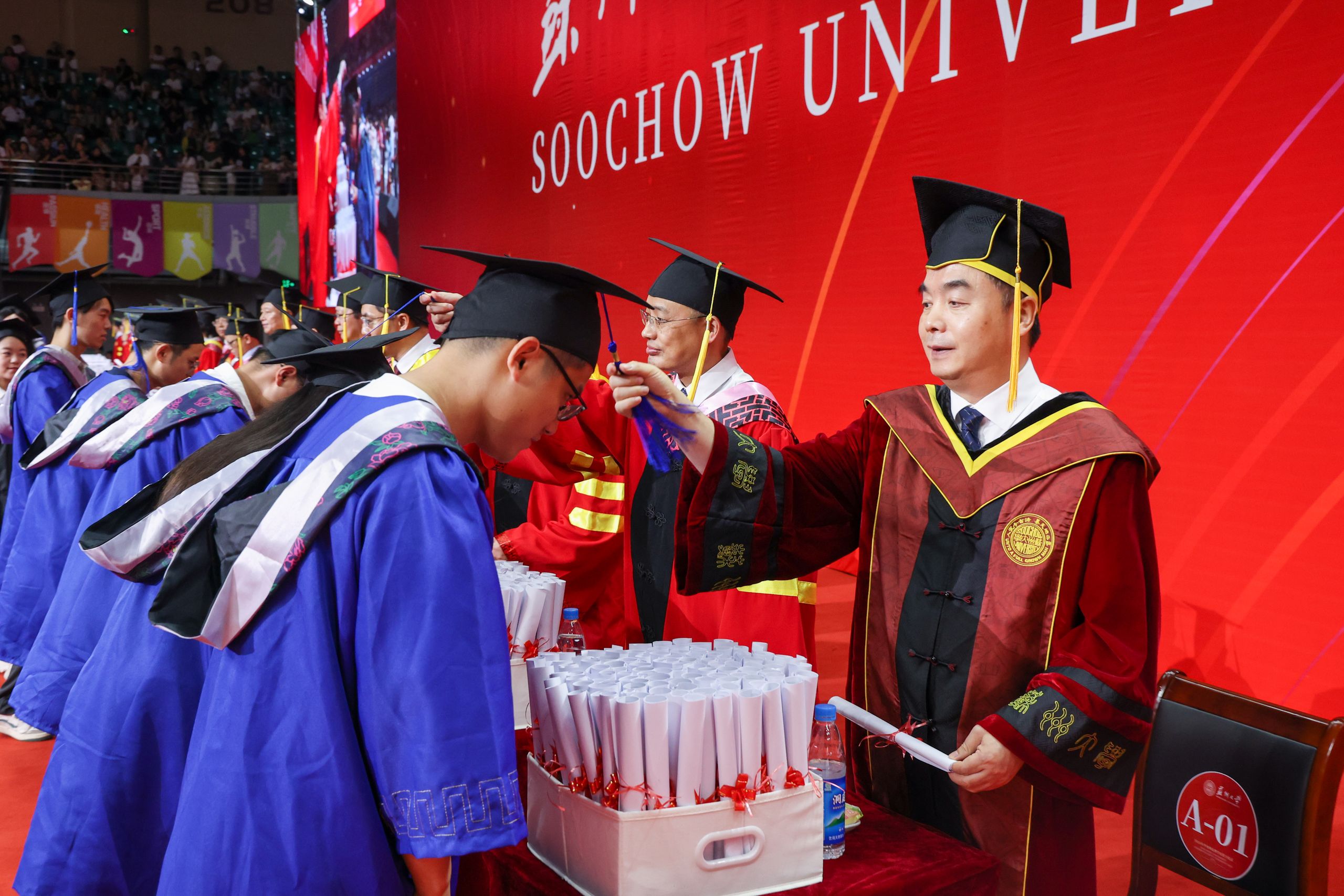 炽热六月,心生欢喜。6月22日,苏州大学2024年毕业典礼暨学位授予仪式在学校文体中心(独墅湖校区二期体育馆)举行。今年的典礼分为本科生和研究生两场,6200名本科毕业生、4725名研究生毕业生齐聚崭新的文体中心,上台接受主礼教授的拨穗与祝福,为大学生活画上了圆满的句号。