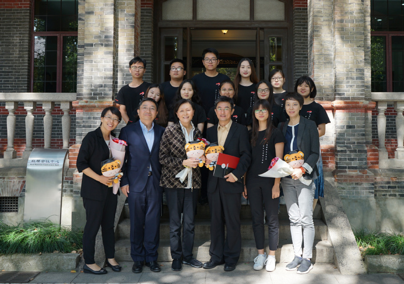 苏州大学爱心学社的学生们得知唐仲英基金会嘉宾来学校访问,自发组织起欢迎队伍,带着鲜花和吉祥物满怀期待来看望他们亲爱的徐阿姨、朱姐姐和张姐姐,红楼会议中心门前欢快一片。