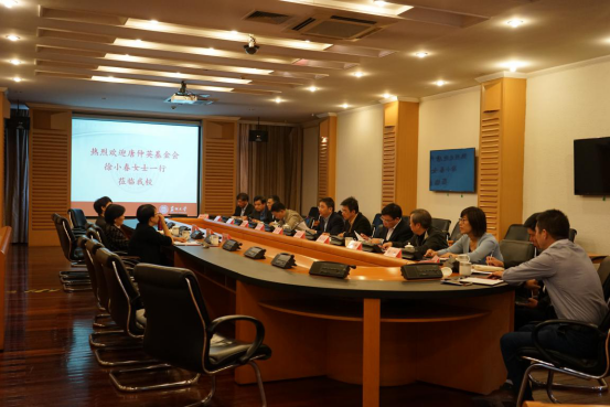 2018年10月11日,唐仲英基金会执行总裁徐小春女士,项目总监朱莉女士,项目主管张小丽女士一行莅临我校。苏州大学党委书记江涌、校长熊思东、副校长杨一心、副校长陈卫昌以及党委办公室主任张国华、校长办公室主任薛辉等相关职能部门和学院(部)领导共同接待了到访嘉宾一行,并在红楼会议中心217进行了座谈。