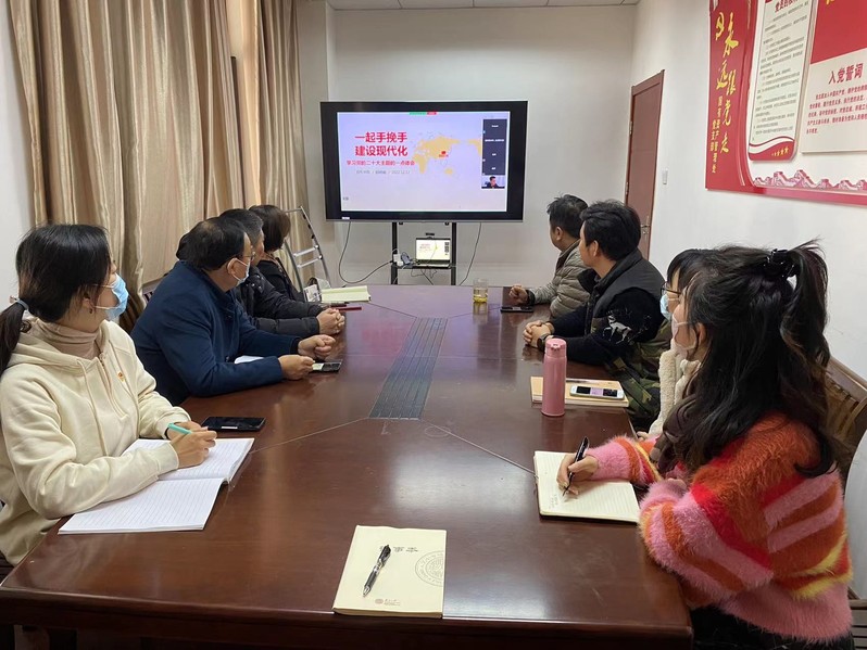 顾明高首先介绍了二十大的报告概况,之后分别从“团结奋斗建设现代化、史无前例的宏伟壮举、实现目标的时间考虑、前景可期而道阻且长、全面贯彻习近平新时代中国特色社会主义思想,团结奋斗以中国式现代化推进中华民族伟大复兴”这五个方面细致展开,让支部成员进一步加深了对于“中国式现代化”的理解和认识。他号召全体党员要把思想和行动统一到党的二十大精神上来,以学促干,弘扬伟大建党精神,自信自强、守正创新,踔厉奋发、勇毅前行,为全面建设社会主义现代化国家而团结奋斗。